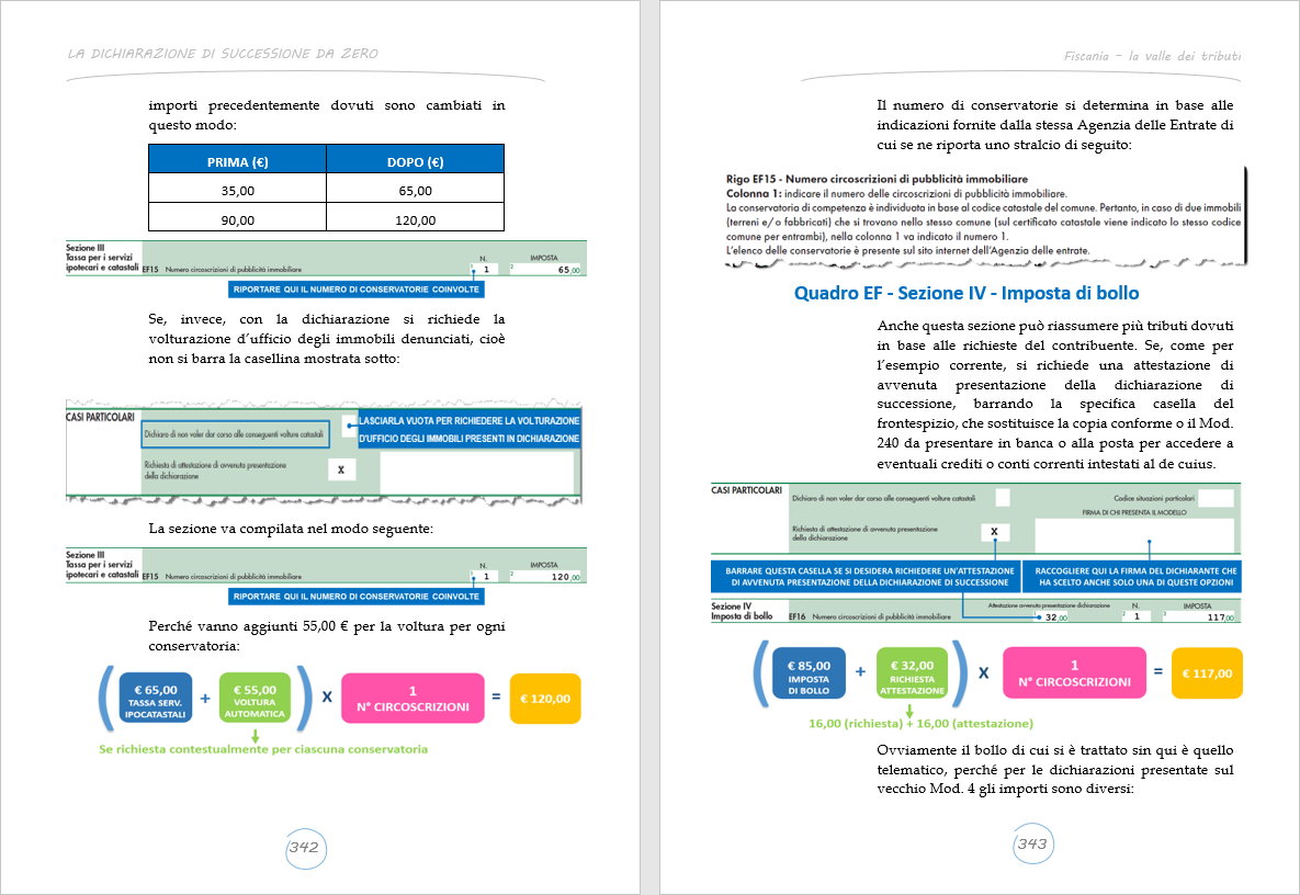 Nella nuova versione del libro sono presenti esempi passo-passo relativi alla determinazione degli importi di nuove imposte o di quelle riformulate, e le modalità operative da seguire per autoliquidare l’imposta di successione per le dichiarazioni presentate e apertesi dal 1° gennaio 2025.