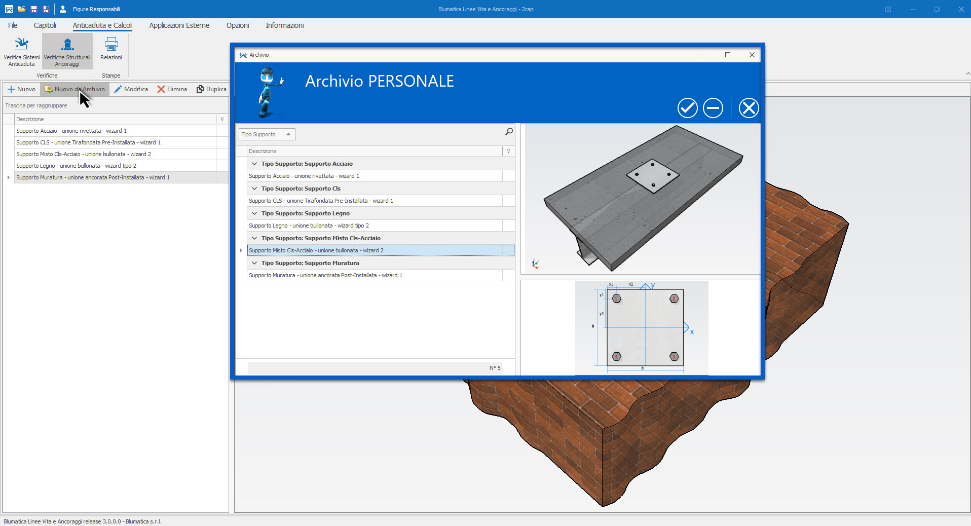- Possibilità di creare database personale di ancoraggi: progettato e salvato un ancoraggio in database personale potrai accedervi da qualsiasi file di lavoro