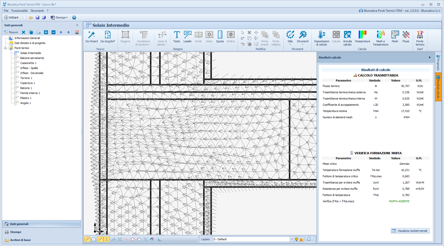 Blumatica Ponti Termici FEM è perfettamente integrato in Blumatica Energy ma può essere utilizzato anche in maniera autonoma.