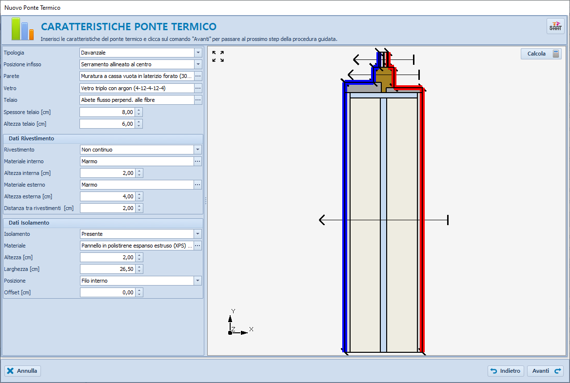Il Wizard consente la massima personalizzazione sia dei materiali che della geometria del ponte termico, con visualizzazione in tempo reale dei risultati in modo da aver sempre piena percezione di ciò che si sta progettando.