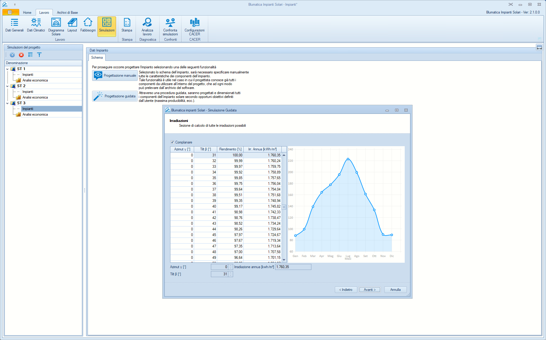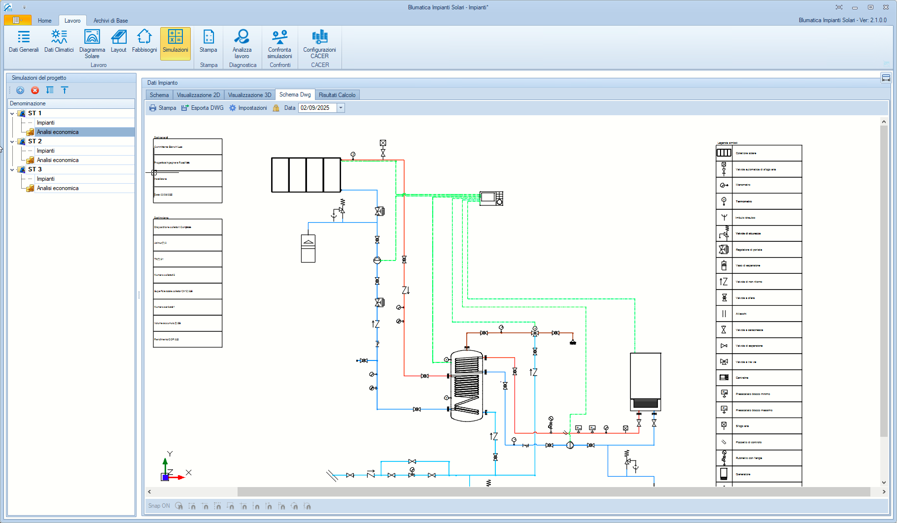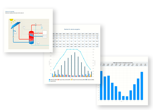 Simulazione energetica tramite Wizard o manuale dello schema di impianto solare come da normativa.