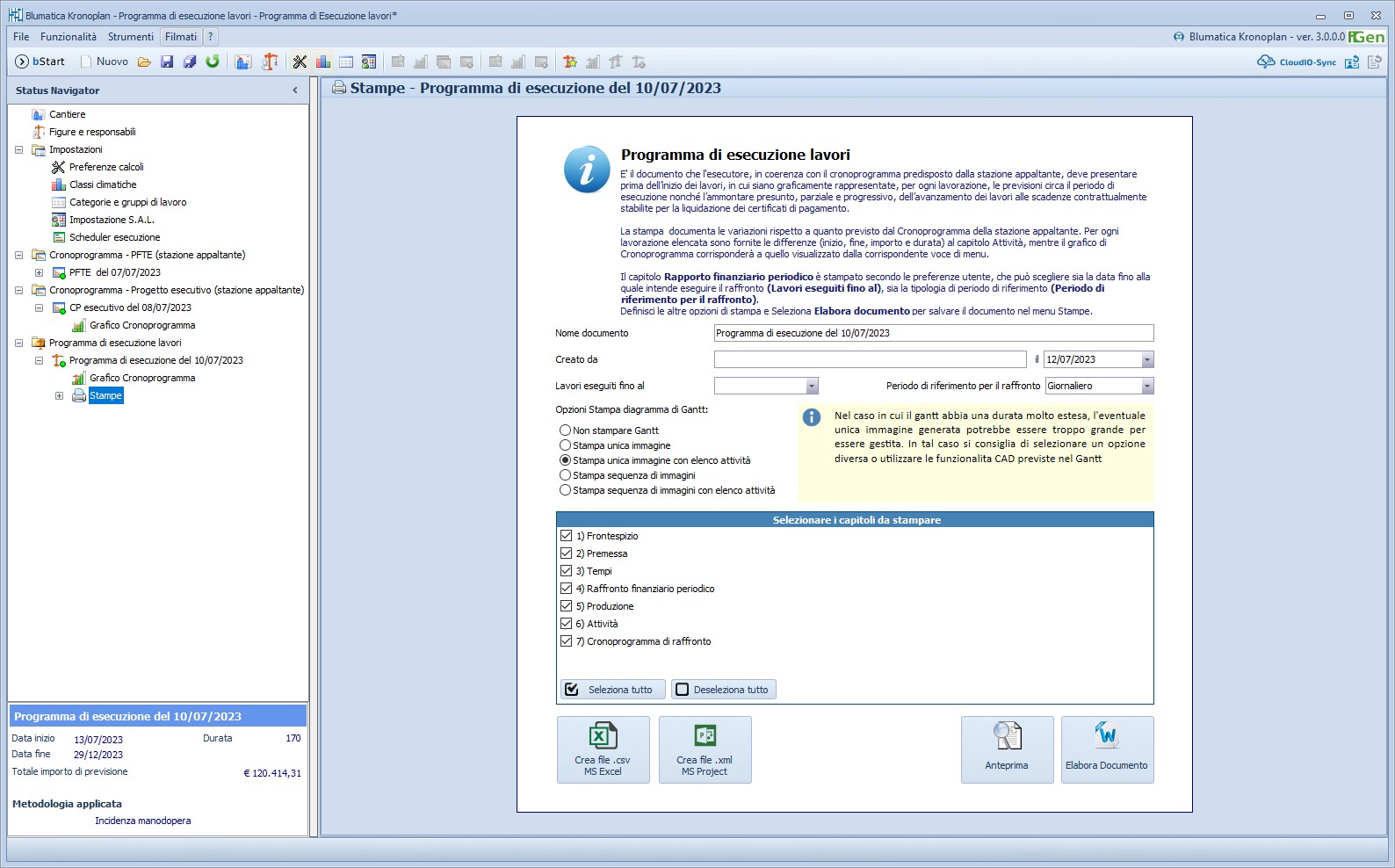 - Puoi archiviare quanti Cronoprogrammi desideri (di progetto, di esecuzione e di raffronto) per documentare lo storico e/o le variazioni